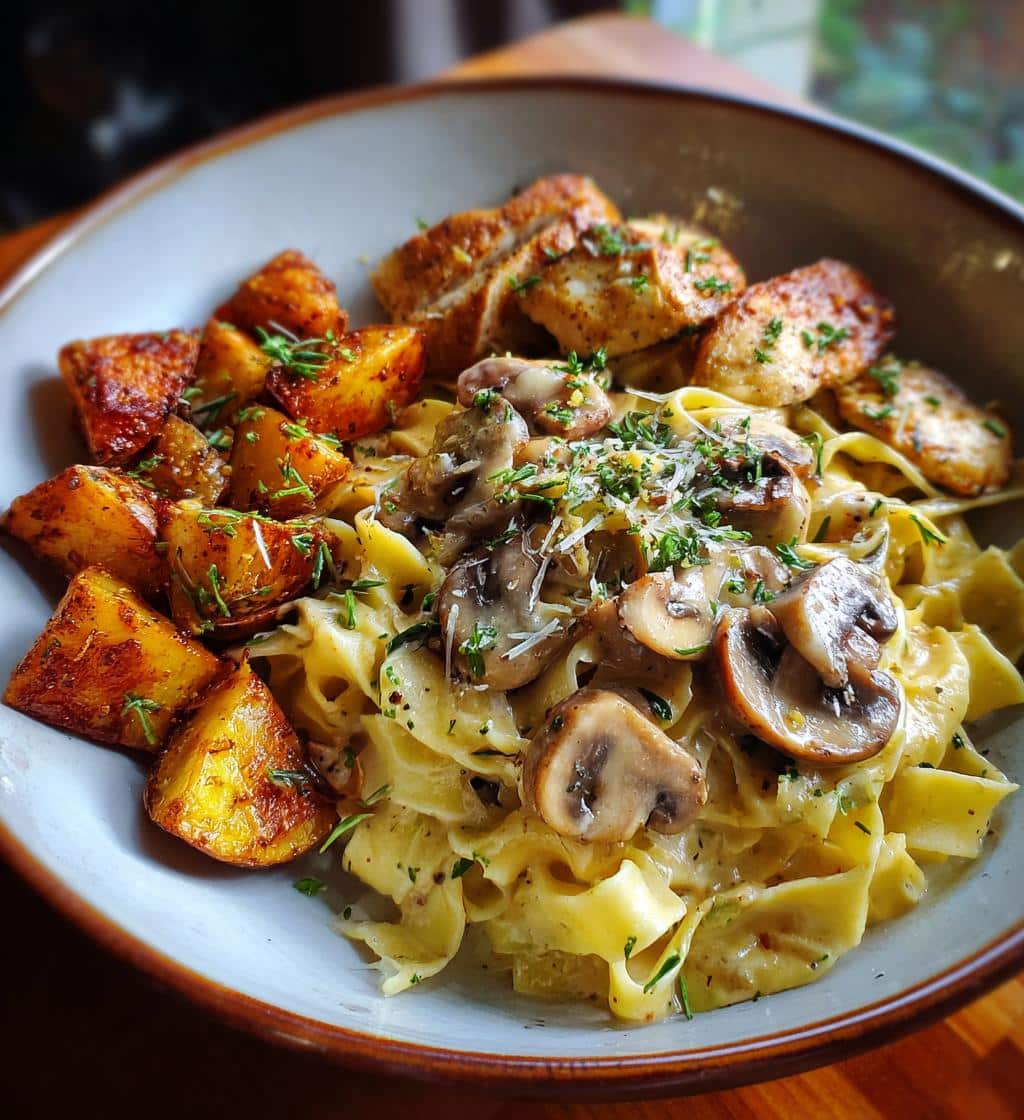 Creamy Mushroom Garlic Chicken Alfredo with Hot Honey Roasted Potatoes offers a wonderfully satisfying and flavorful dish perfect for any …