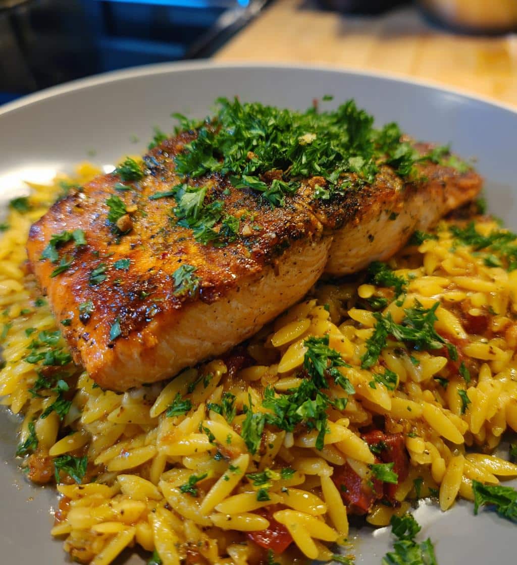 One Skillet Salmon with Lemon Orzo: 30-Minute Delight